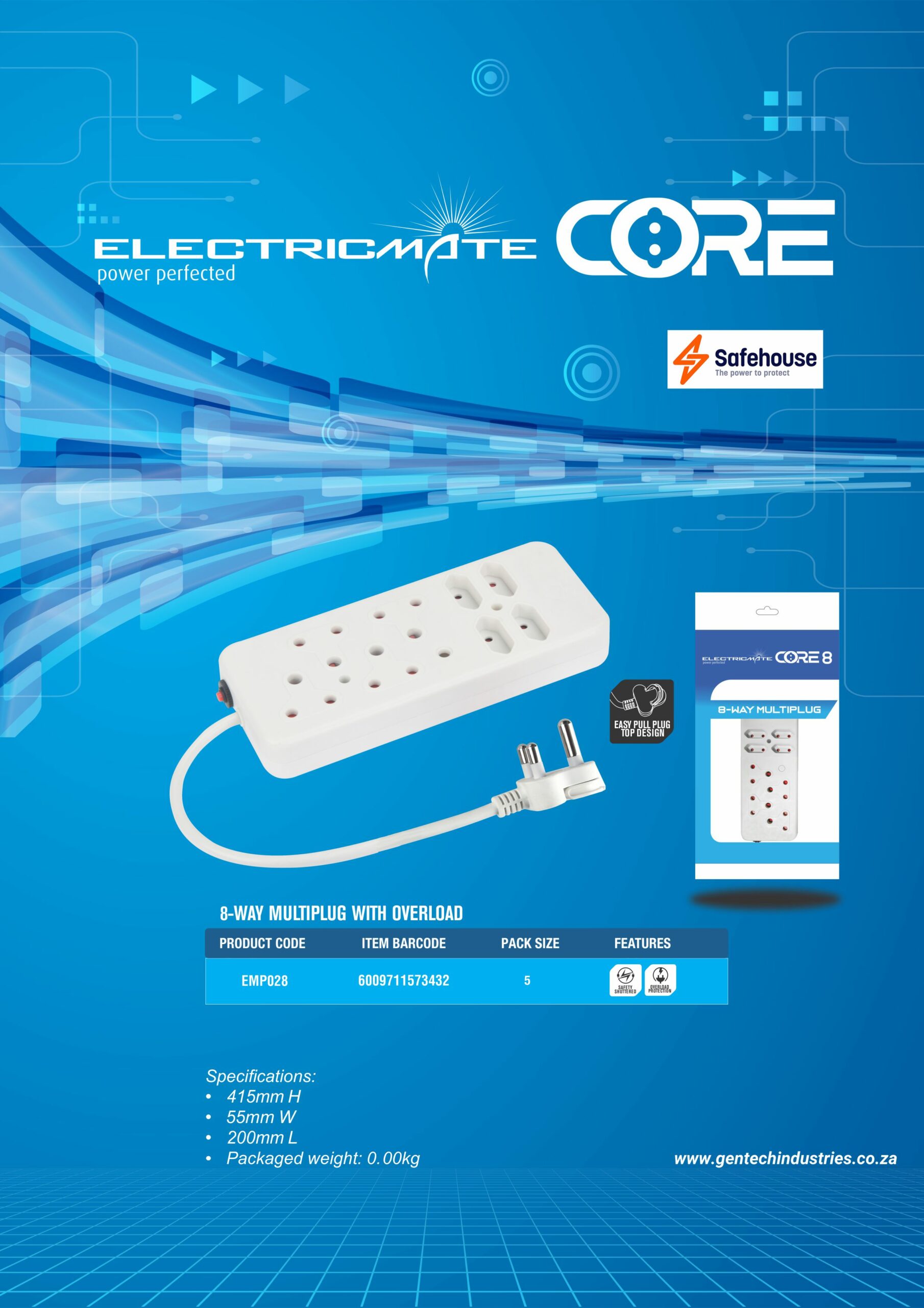 Electricmate Core 8-Way Multiplug With Overload I 1 Year Warranty