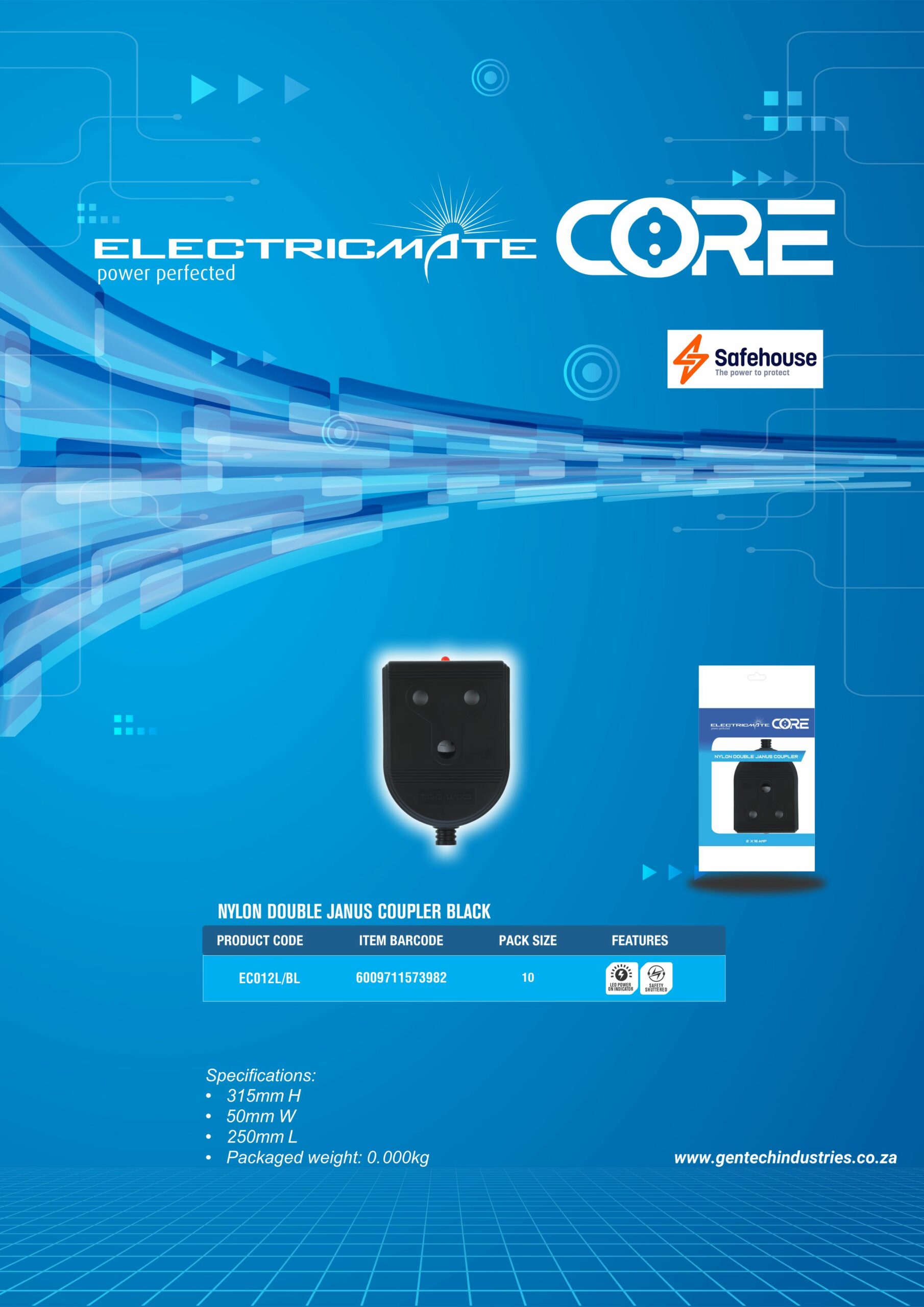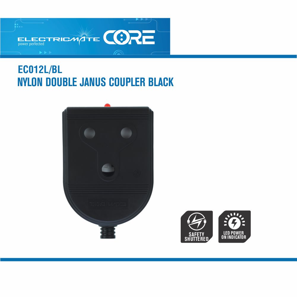Electricmate Core Nylon Double Janus Coupler Black I 1 Year Warranty