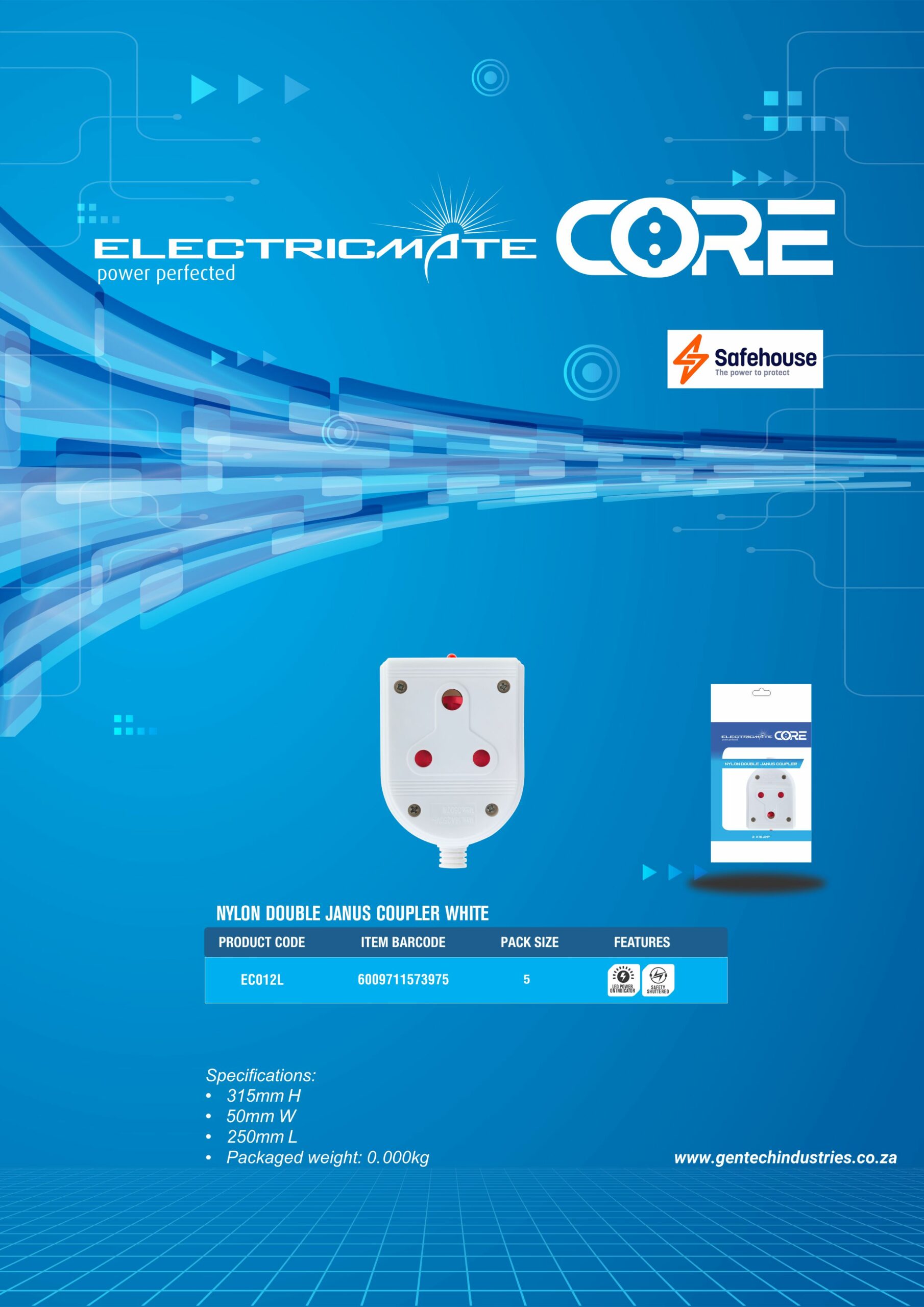 Electricmate Core Nylon Double Janus Coupler White I 1 Year Warranty