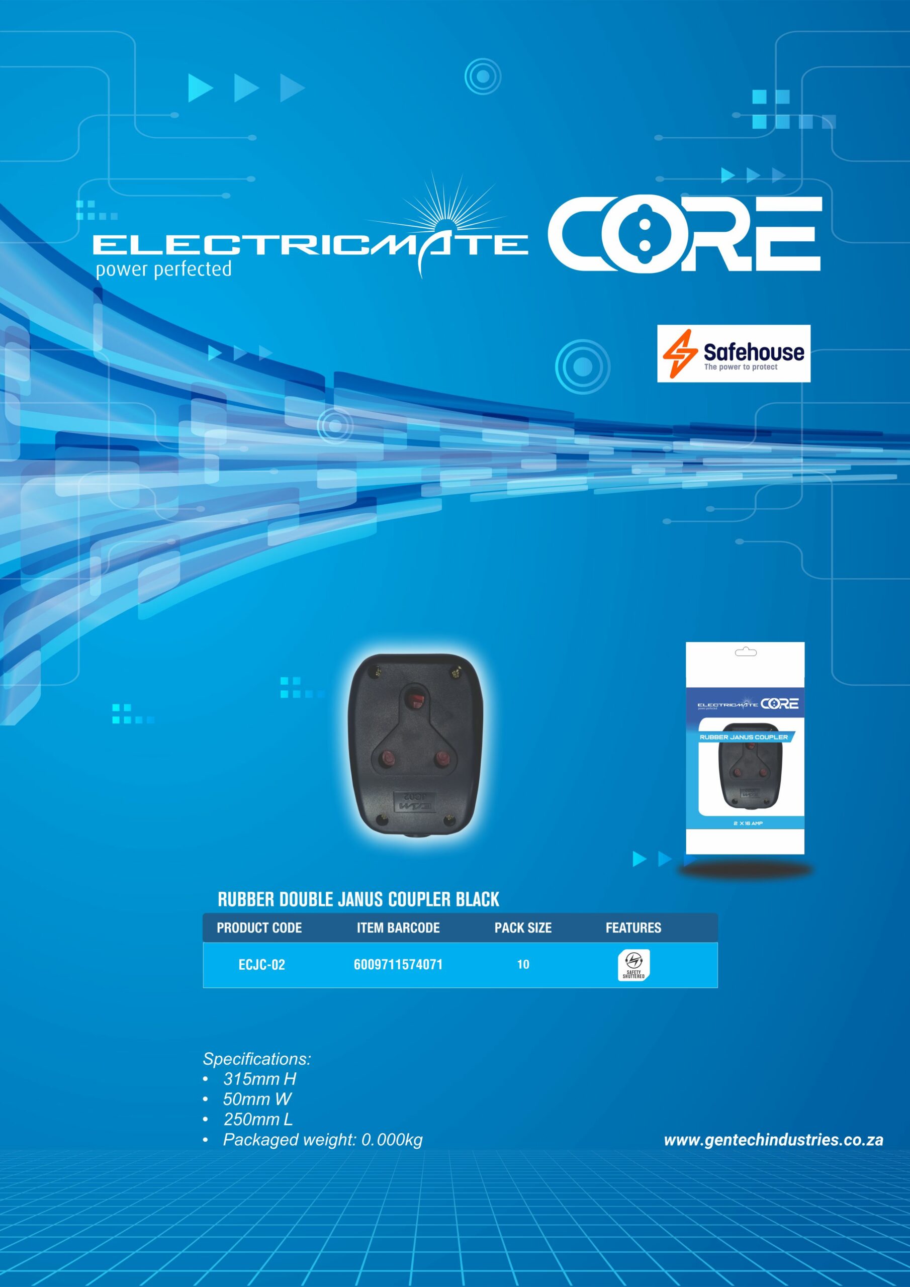 Electricmate Core Rubber Double Janus Coupler Black I 1 Year Warranty