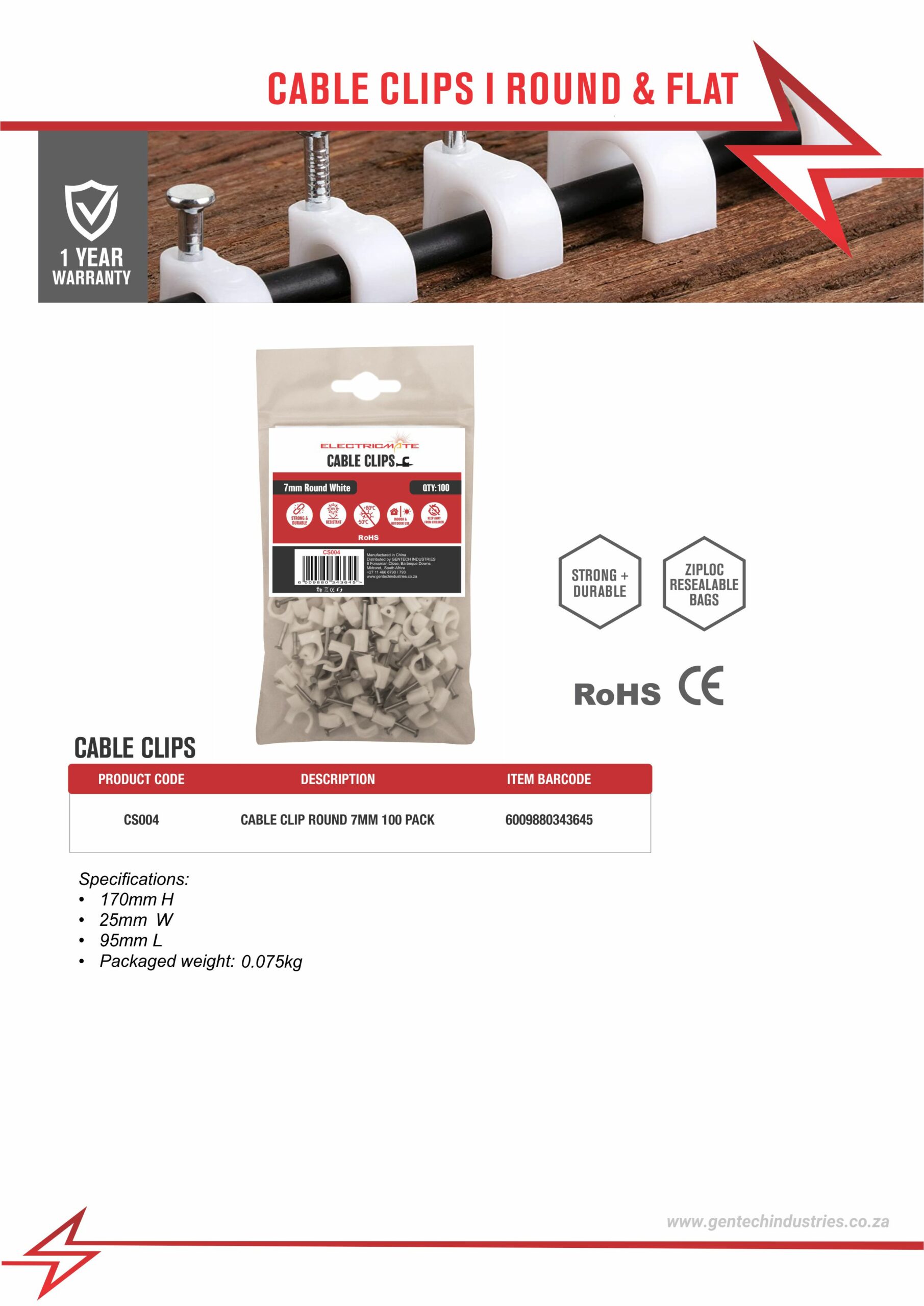 / ELECTRICMATE CABLE CLIP ROUND 7MM 100 PACK