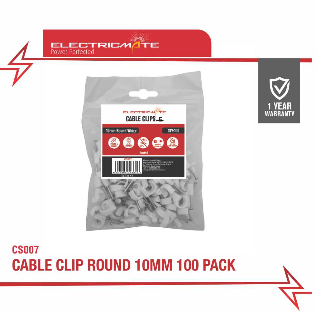 ELECTRICMATE CABLE CLIP ROUND 10MM 100 PACK
