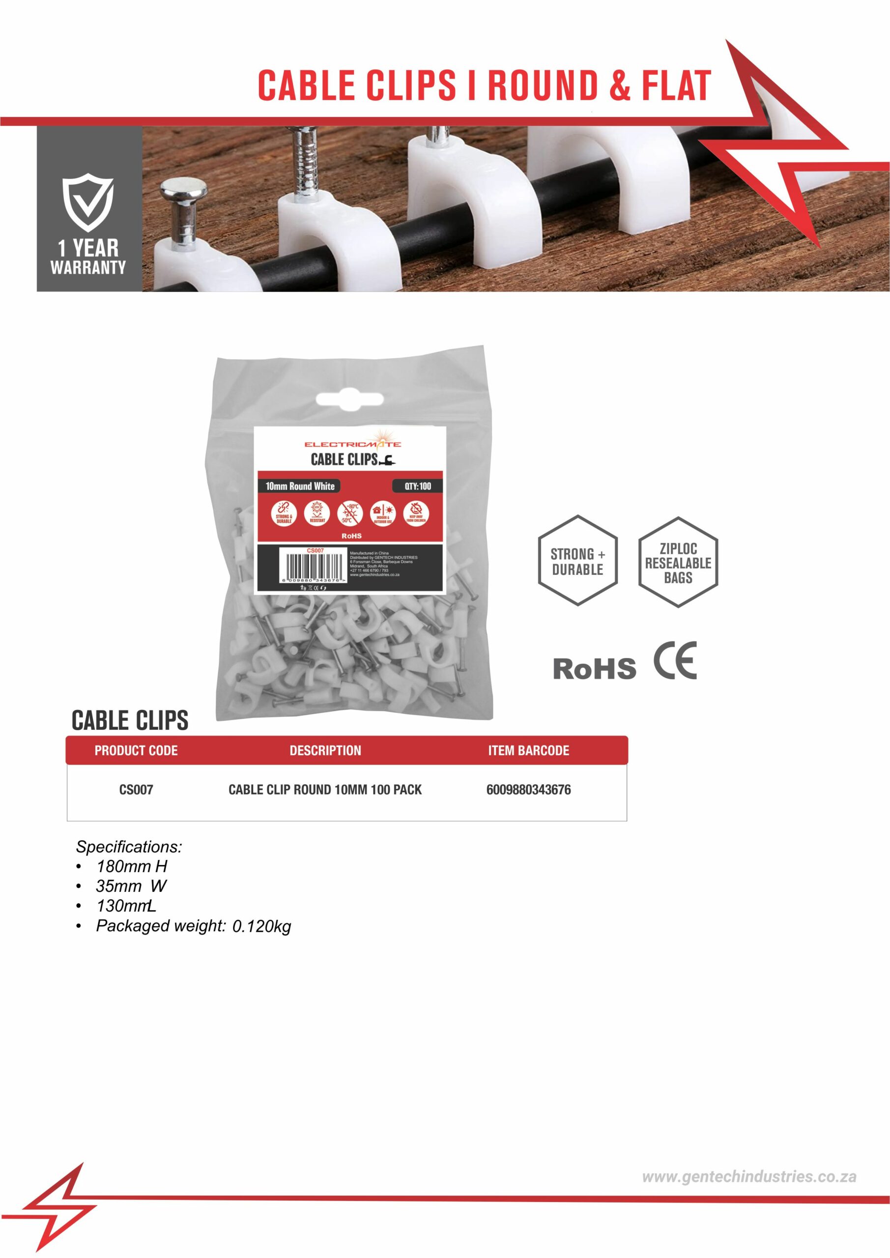 / ELECTRICMATE CABLE CLIP ROUND 10MM 100 PACK