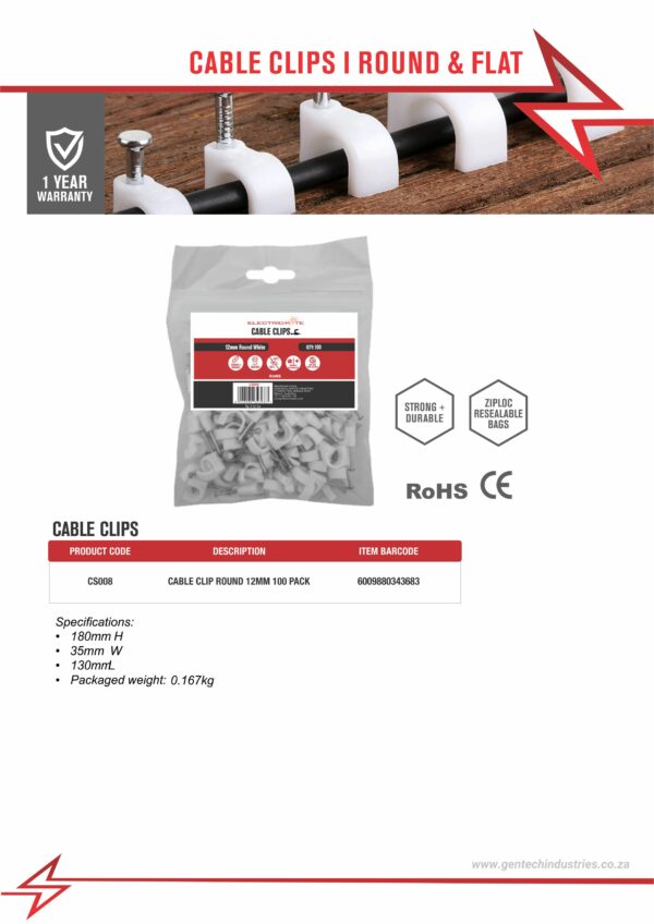 / ELECTRICMATE CABLE CLIP ROUND 12MM 100 PACK