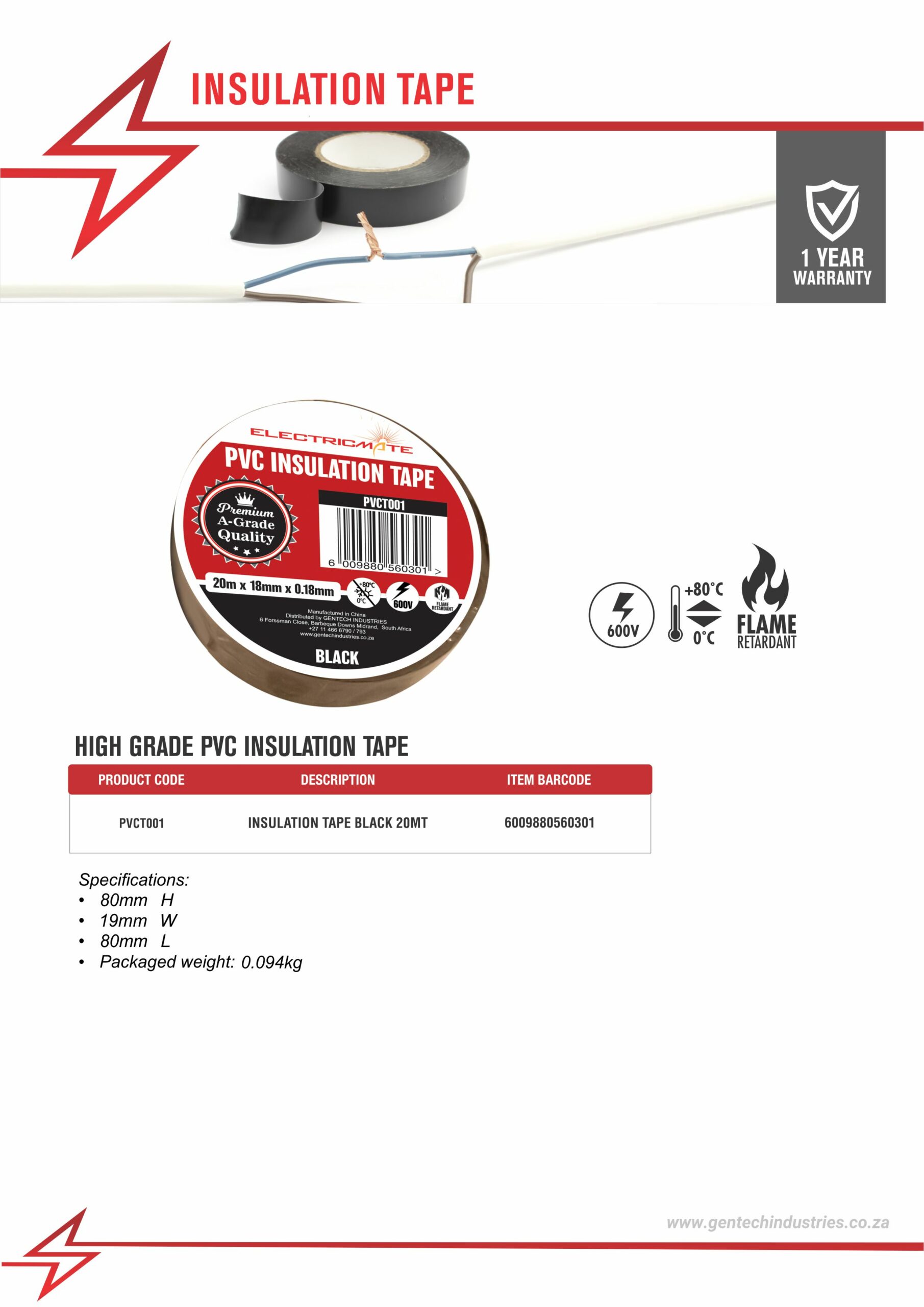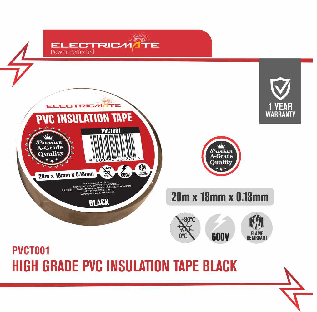 ELECTRICMATE HIGH GRADE PVC INSULATION TAPE BLACK 20M