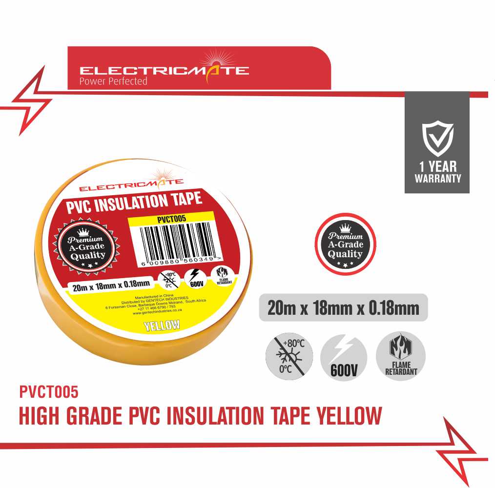 ELECTRICMATE HIGH GRADE PVC INSULATION TAPE YELLOW 20M