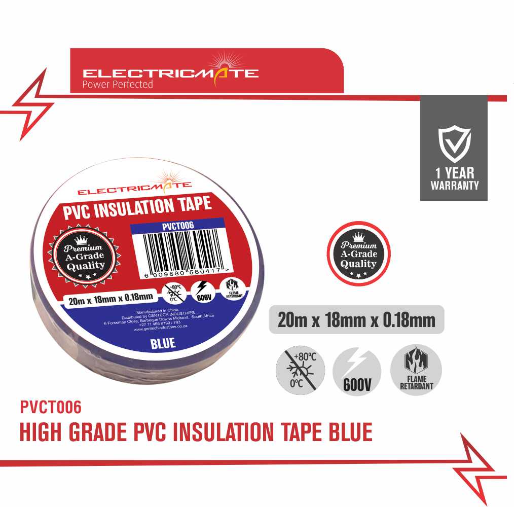 ELECTRICMATE HIGH GRADE PVC INSULATION TAPE BLUE 20M